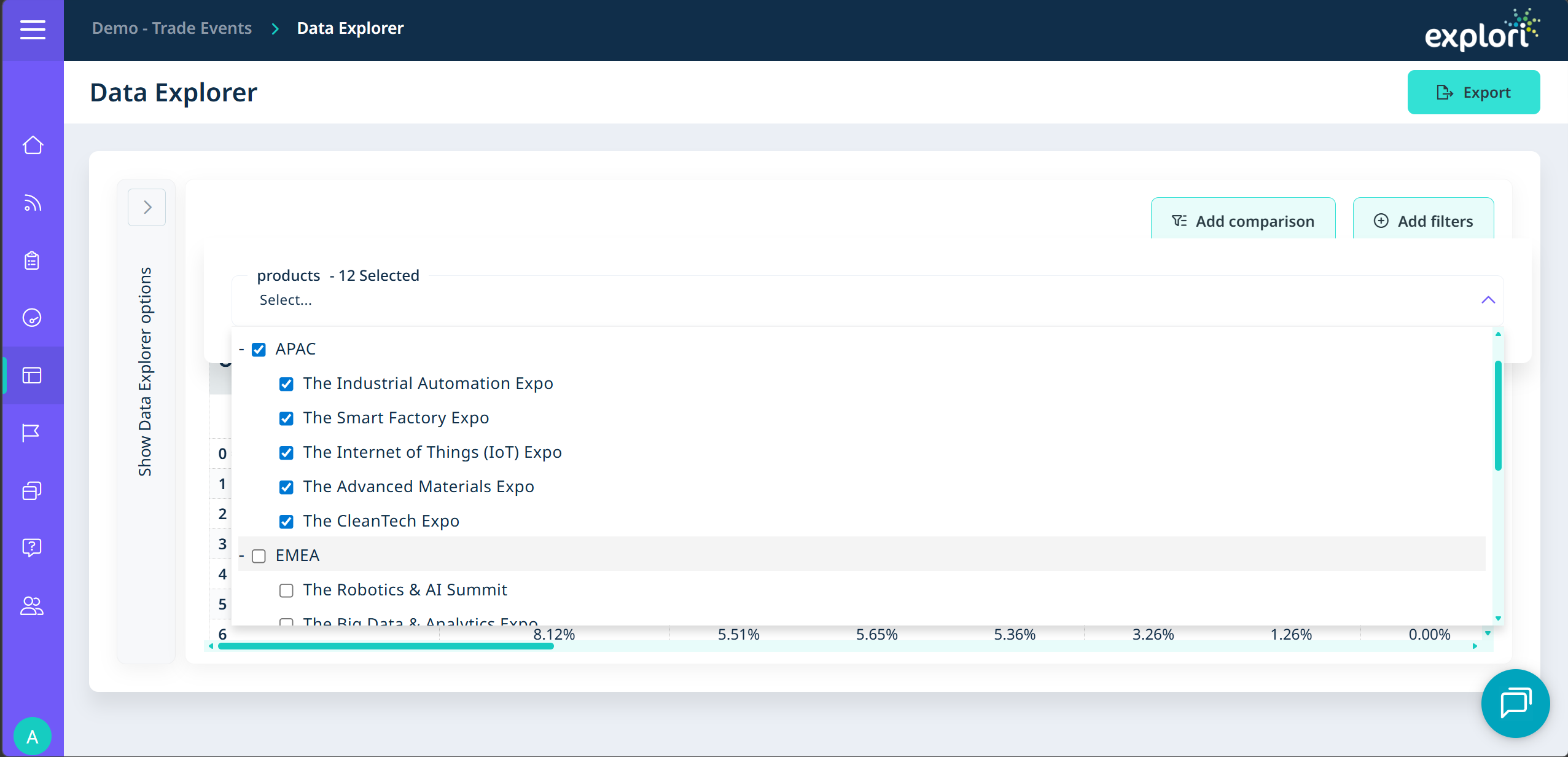 Once you’re done selecting your data, you can export the table into a CSV file for further reporting and analysis.