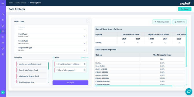 The Data Explorer allows you to generate reports from the data stored within the platform, allowing you to summarise key information, including the KPIs, and compare results across your company as well as the industry.