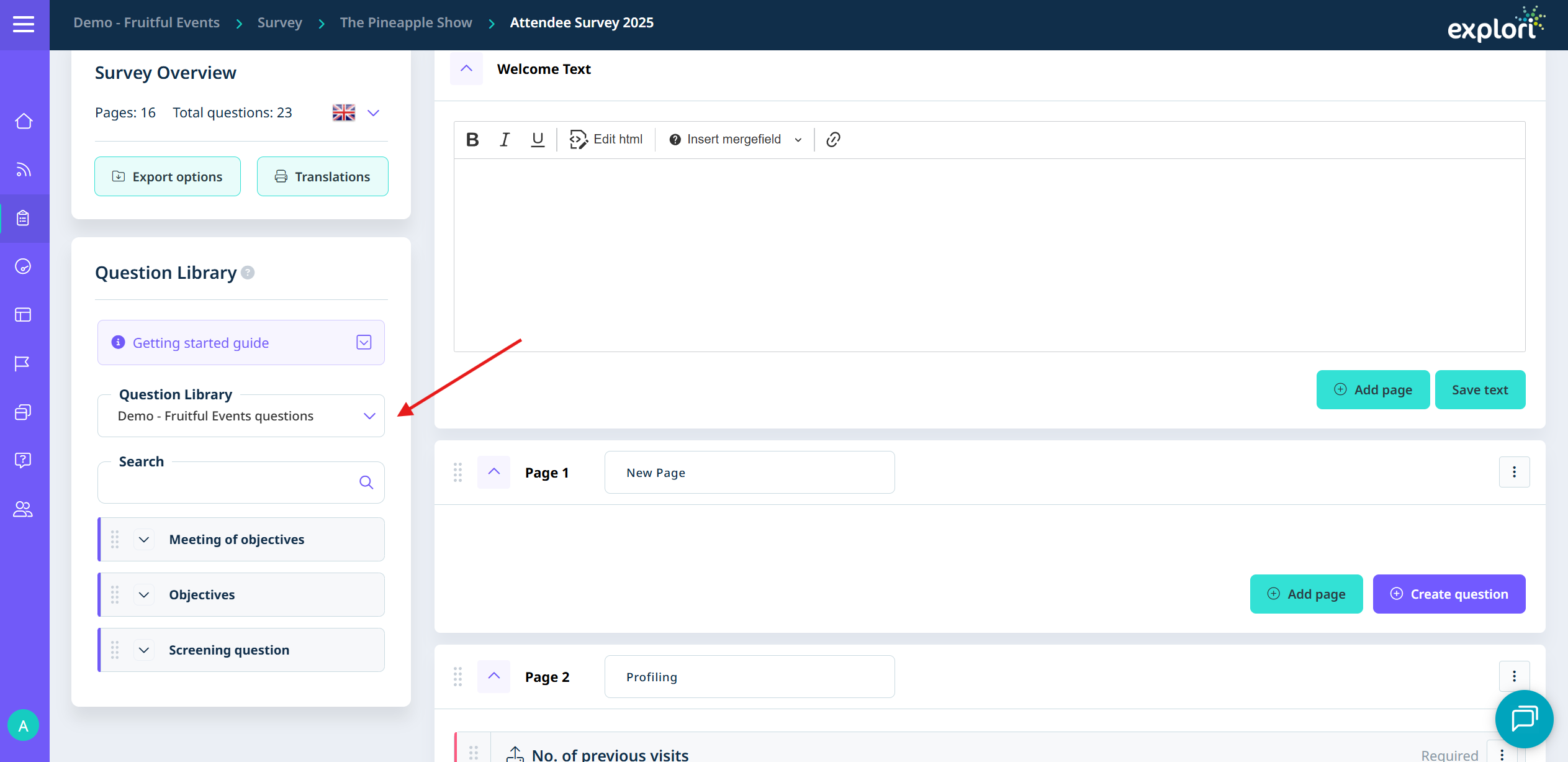 - Go to ‘Manage Questions’ via the menu