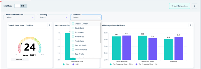 Filters can also be added to your dashboard to drill down on more specific data points, making it easier for you to visualise the metrics that matter most to you. You can apply multiple filters at once to quickly compare different viewpoints. If you would like to add filters to your dashboard, please contact your Explori lead.