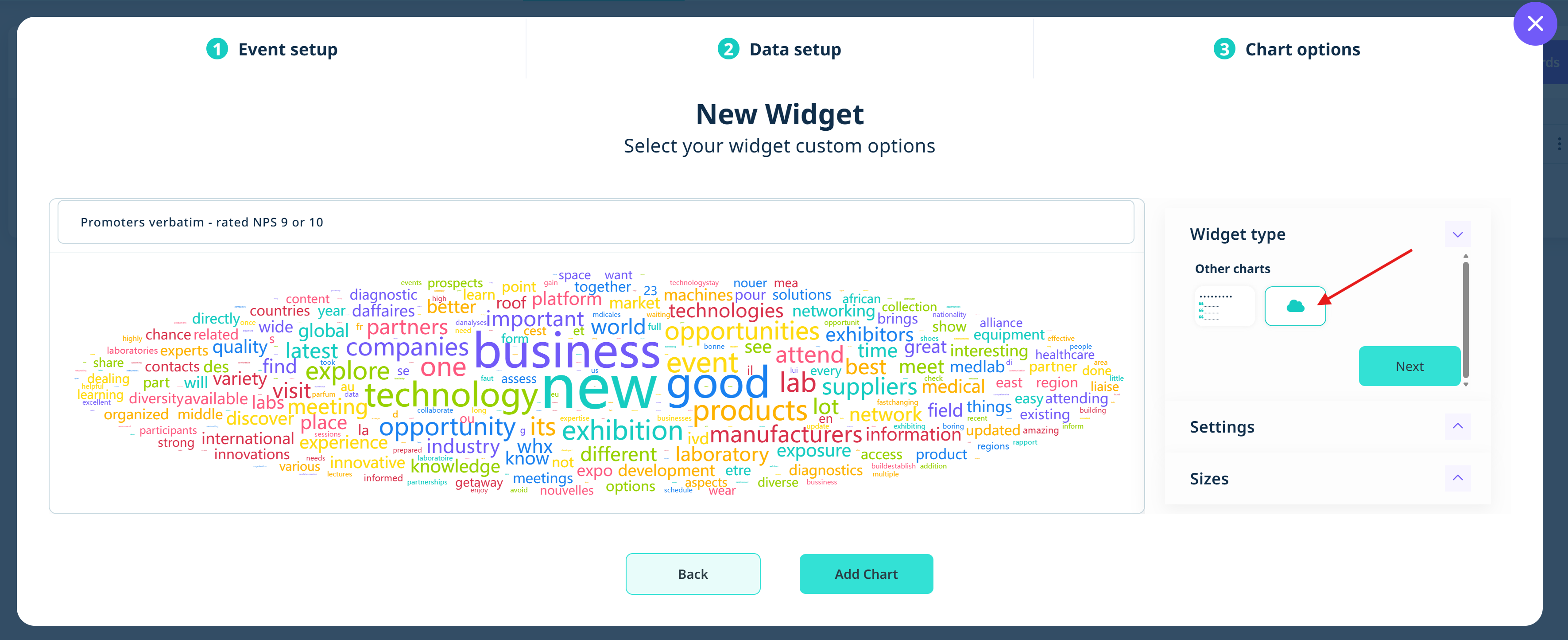 You can also choose the size of the widget. Once you are happy, ‘Add Chart’ at the bottom.