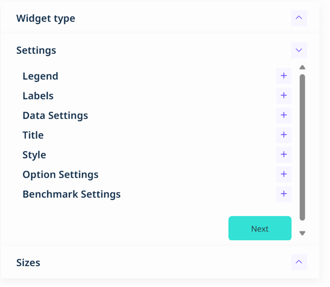 Add your first widget to start. You can add a widget which is question based widget or from other measures.