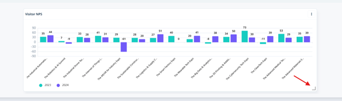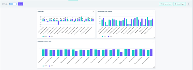 The NPS Score will be displayed at event level on a year on year basis.