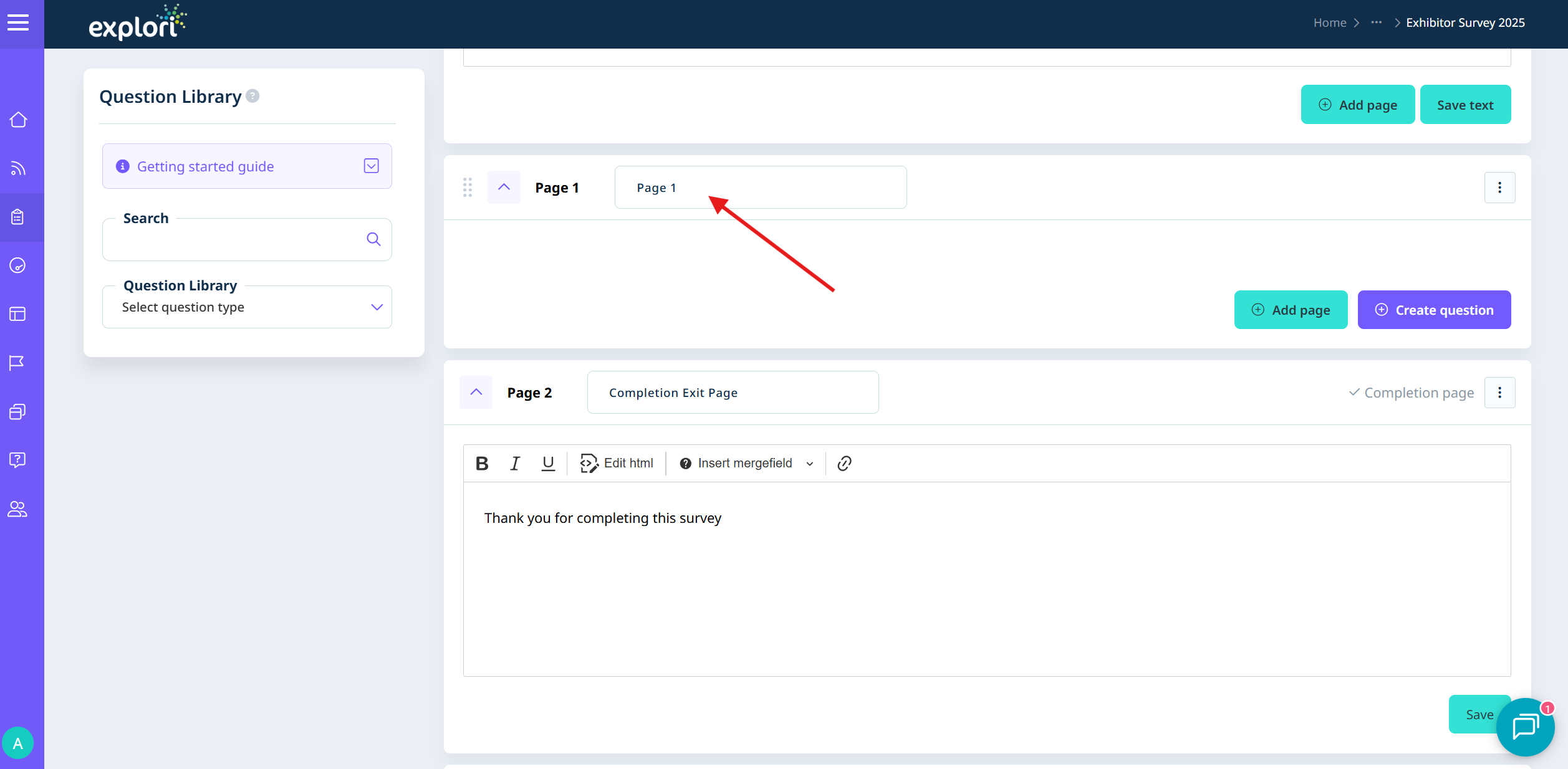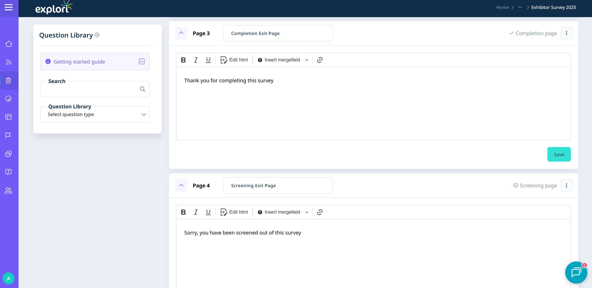 At the bottom of the survey page, you have the Completion page and Screening page which you can also edit.