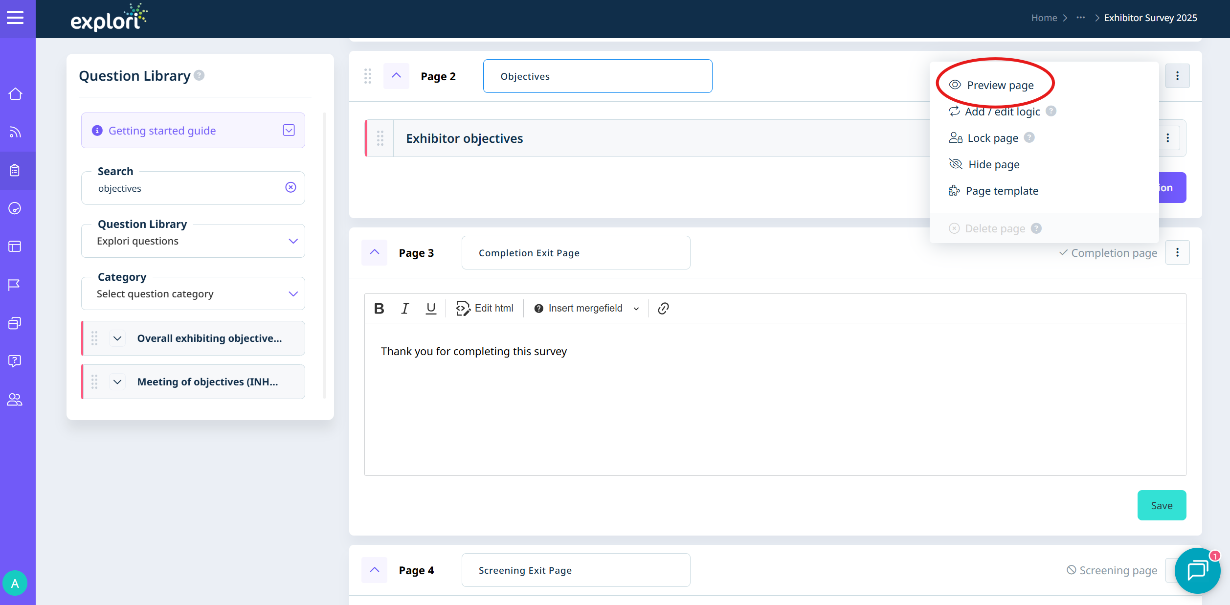 You can then preview the question by clicking on the question title or by selecting the page options on the right and previewing the page.
