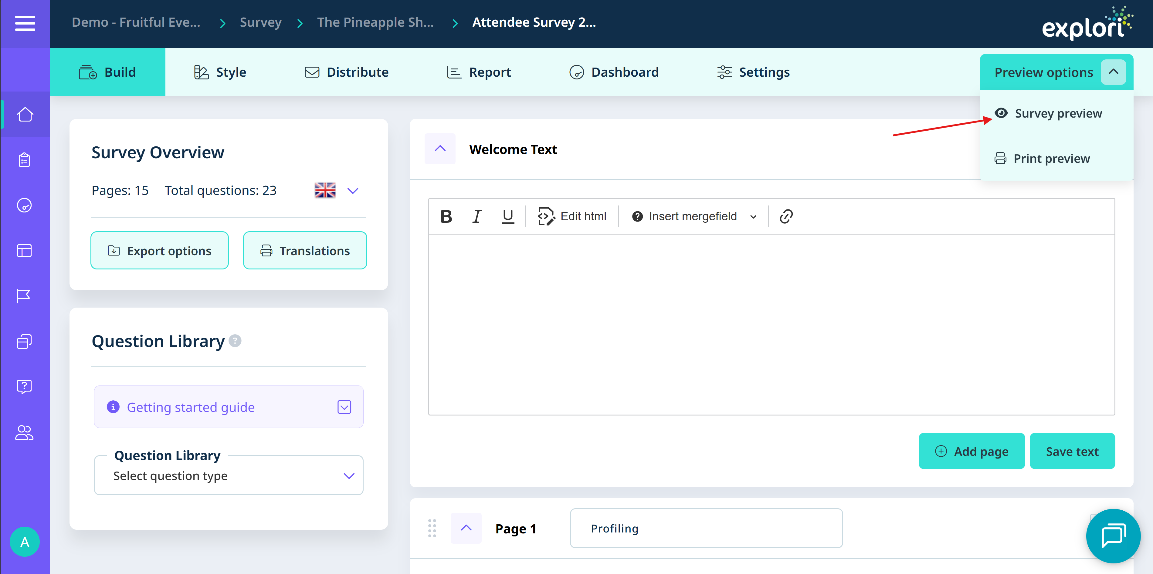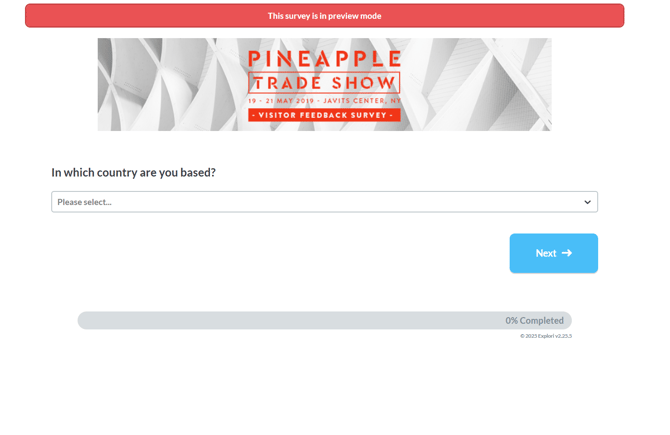It is strongly recommended that you test your survey before distribution to ensure that the logic is working as expected and there are no errors in the questions. Making the necessary checks is important with mistakes being noticed by respondents, reflecting badly on the event.