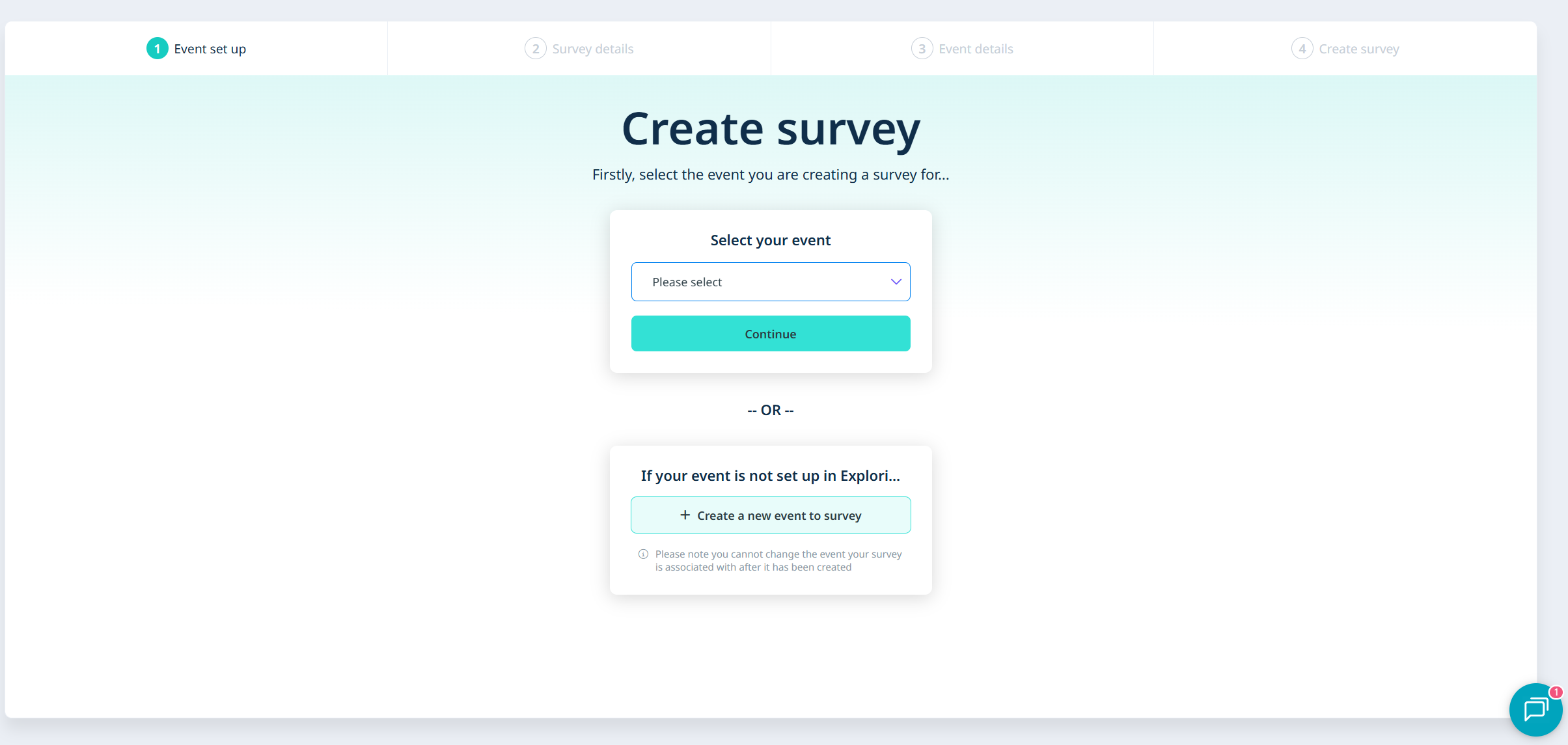 Alternatively you can either create a new survey from the 'Surveys' page, or you will be prompted to create a new survey when you create a new event in Explori.